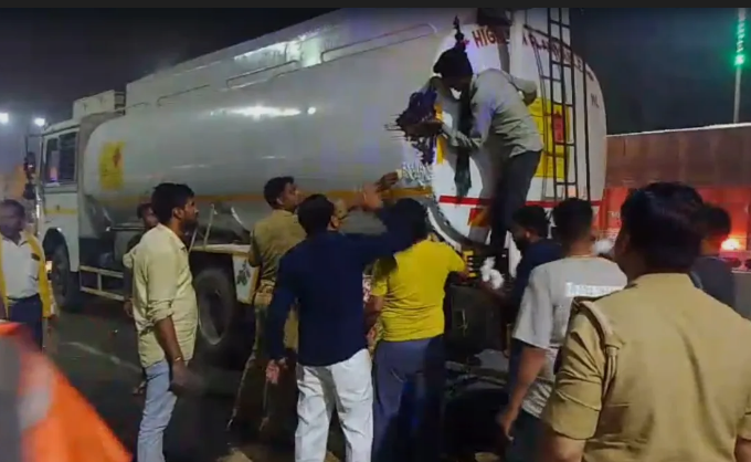 कानपुर-कौशांबी हाईवे पर पेट्रोल-डीजल के लिए अफरातफरी, टैंकर हादसे के बाद ड्रम-बाल्टी लेकर पहुंचे लोग