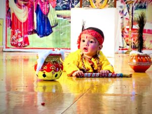 पूजन में सहयोग उपाध्यक्ष श्री आनन्द कुमार सिंह, महामंत्री श्री विपुल कुमार अग्रवाल, कोषाध्यक्ष श्री विवेक अग्रवाल एवं कार्यक्रम संयोजक श्री राजेंद्र सिंह शेखावत ने किया। कार्यक्रम का शुभारंभ श्री श्याम नारायण चौबे के द्वारा प्रस्तुत संस्था के घ्येय गीत से हुआ। संस्था का परिचय श्री शेषनाथ मालवीय ने दिया। श्रीमती गीता सिंह व श्रीमती गीता मौर्या द्वारा निर्देशित नृत्य ने दर्शकों का मन मोह लिया। कार्यक्रम में नन्हे मुन्ने बच्चे अपने माता-पिता के साथ श्री कृष्ण जी की रंग बिरंगी वेशभूषा के साथ मनमोहन रूप में प्रस्तुत हुए एवं प्रस्तुति देखकर प्रेक्षा गृह तालियो से गूंजता रहा।