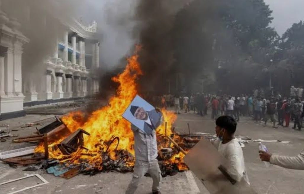 भीड़ ने संसद भवन, नेताओं के आवास और होटलों को आग के हवाले कर दिया।