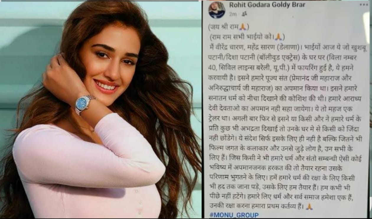 हमले के कुछ ही देर बाद सोशल मीडिया पर गैंगस्टर रोहित गोदारा द्वारा एक पोस्ट साझा किया गया, जिसमें इस फायरिंग की जिम्मेदारी ली गई और दिशा पाटनी को सीधी धमकी दी गई। पोस्ट में लिखा गया कि यदि कोई बॉलीवुड कलाकार सनातन धर्म या साधु-संतों का अपमान करता है, तो उसे “भारी कीमत चुकानी पड़ेगी।”