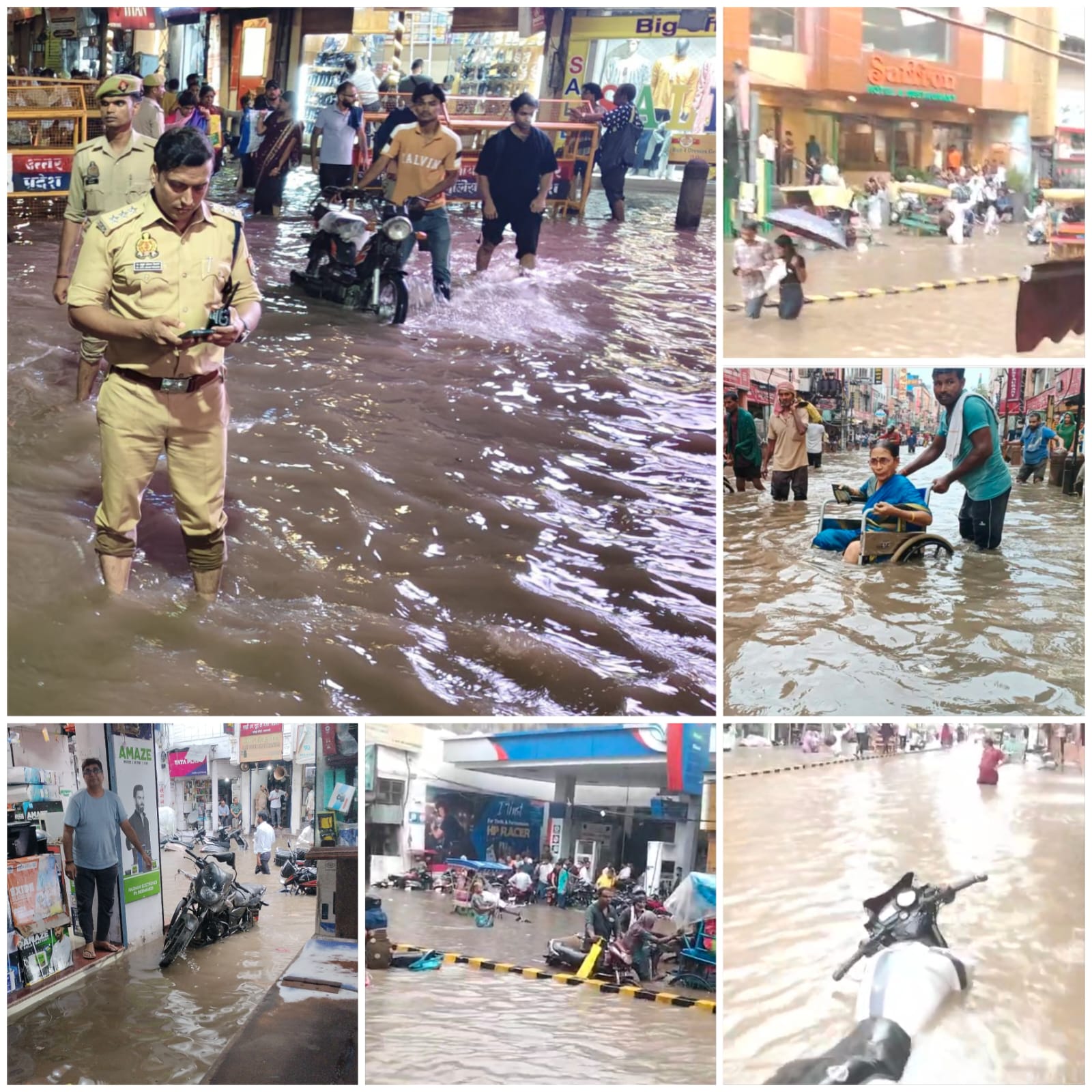 राजधानी स्तर के बाजारों लक्सा, गोदौलिया, चौक, मदनपुरा, मैदागिन सहित गिरजाघर चौराहा, सर्राफा मंडी के सामने, कोदई चौकी और कालीमहल जैसे इलाकों में पानी सड़कों पर छलक गया। सर्राफा व्यवसायियों की दुकानें पानी में डूबती नज़र आईँ।