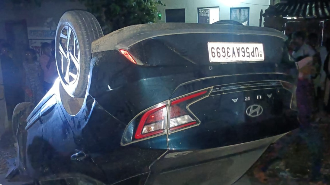कार पलटने से ग्राम पंचायत अधिकारी और ग्राम विकास अधिकारी गंभीर रूप से हुए घायल, अस्पताल रेफर