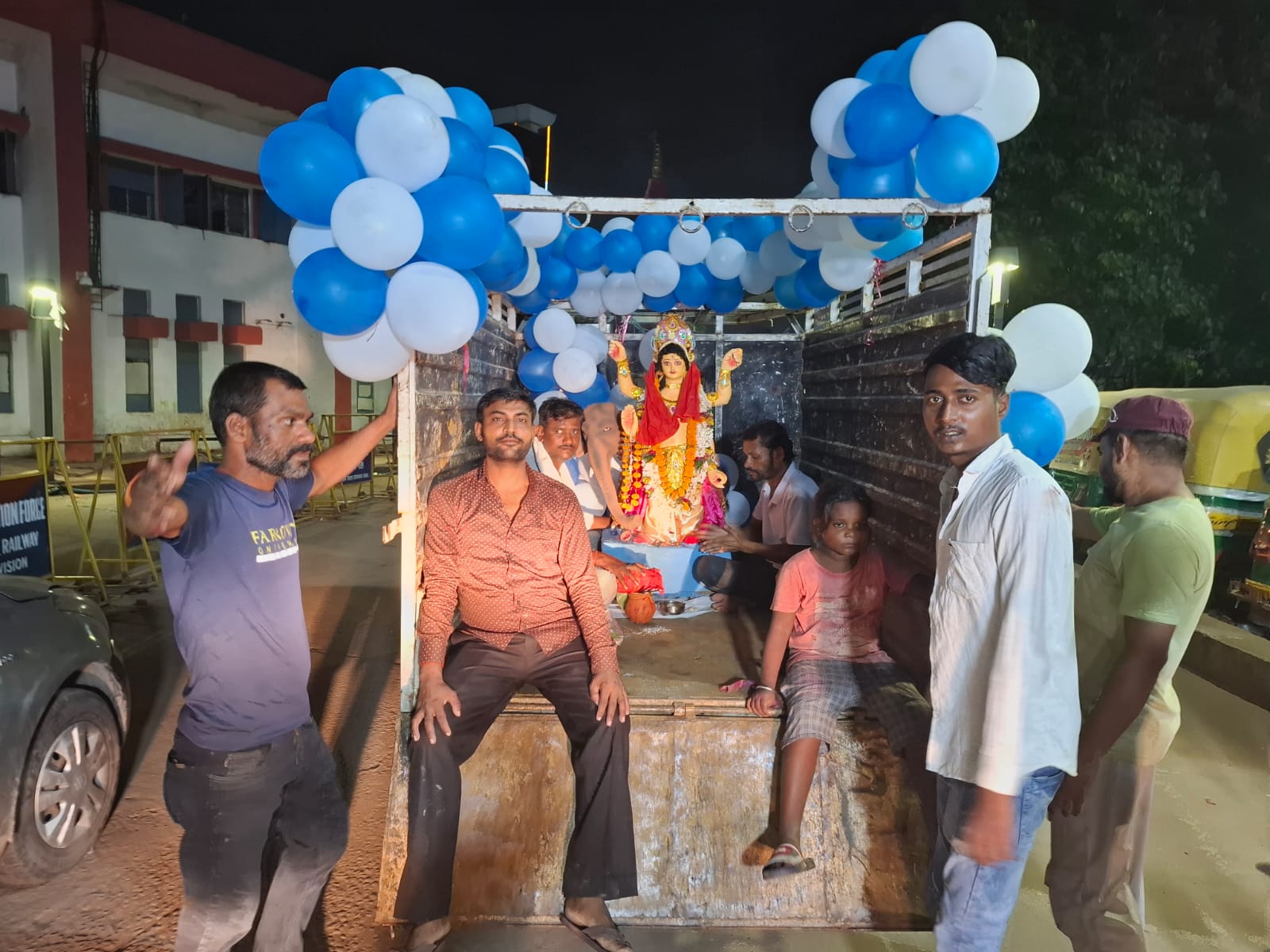 पंडित दीनदयाल उपाध्याय नगर के मुगलसराय रेलवे सर्कुलेटिंग एरिया से ऑटो चालकों और स्थानीय लोगों ने विश्वकर्मा पूजा के अवसर पर प्रतिमा विसर्जन यात्रा निकाली। यह यात्रा देर रात शुरू हुई, जिसमें बड़ी संख्या में श्रद्धालु शामिल हुए।विसर्जन से पूर्व बाबा विश्वकर्मा की विधिवत पूजा-अर्चना की गई। इसके बाद प्रतिमा को विसर्जन के लिए ले जाया गया। इस दौरान डीजे की धुन पर लोग नाचते-गाते हुए चल रहे थे।यात्रा में लगभग 100 से 150 लोग शामिल थे। सभी ‘बाबा विश्वकर्मा की जय’ के नारे लगा रहे थे। डीजे पर विश्वकर्मा बाबा के भक्ति गीत बज रहे थे, जिस पर श्रद्धालुओं ने जमकर नृत्य किया।यह विसर्जन यात्रा शांतिपूर्ण ढंग से संपन्न हुई। लोगों ने उत्साह और भक्तिभाव के साथ प्रतिमा का विसर्जन किया।