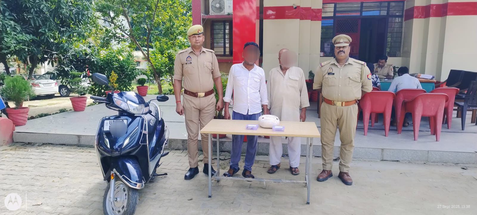 पुलिस के अनुसार, आरोपियों की नीले रंग की स्कूटी (यू पी 56 बी बी 1325) को रोककर जांच की गई, लेकिन वाहन से संबंधित कोई वैध कागजात नहीं प्रस्तुत किए गए। तलाशी में एक सफेद झोले से गांजा बरामद किया गया। अवैध परिवहन में प्रयुक्त स्कूटी को सीज कर दिया गया।