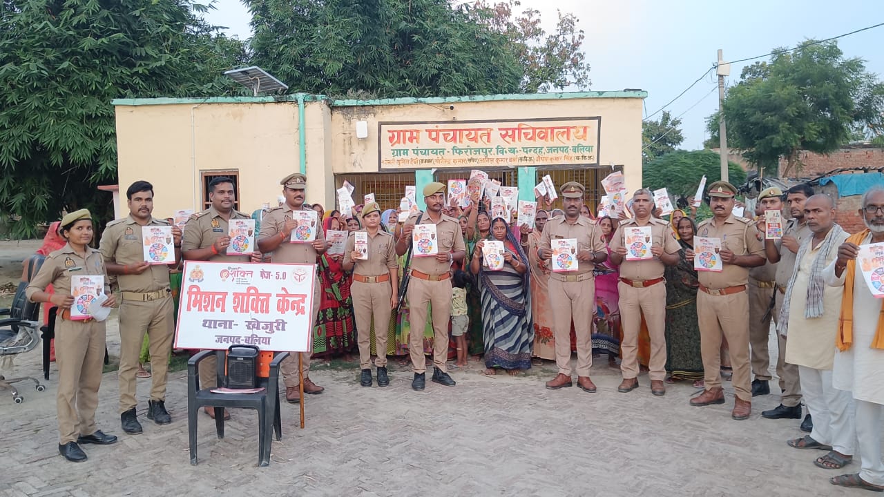 बलिया। पुलिस अधीक्षक ओमवीर सिंह के निर्देशन में थानाध्यक्ष खेजुरी मिथिलेश कुमार के नेतृत्व में मिशन शक्ति फेज- 5 .0 के अंतर्गत थाना खेजुरी के ग्राम सभा फिरोजपुर में आशा बहु तथा आंगनवाड़ी की उपस्थिति में मिशन शक्ति केन्द्र टीम द्वारा तथा महिला सुरक्षा अभियान के तहत उनसे संबंधित समस्याओं के निदान हेतु अभियान चलाकर महिलाओं को जागरुक किया गया तथा उत्तर प्रदेश सरकार द्वारा चलाई जा रही विभिन्न योजनाएं तथा उनकी सुरक्षा के लिए बनाए गए विभिन्न कानूनों से अवगत कराया गया। इस दौरान एस ओ मिथिलेश कुमार ने बताया कि कठिन परिस्थितियों में धैर्य विवेक एवं संयम से काम लेते हुए अपनी सुरक्षा करें तथा डायल 112, 1076, 1090 ,102,108 में फोन करके मदद प्राप्त करें। साइबर क्राइम के सम्बंध में जिक्र करते हुए कहा कि साइबर ठगों से सावधान रहते हुए किसी प्रकार के लिंक, अनचाही कॉल्स रिसीव नहीं करे तथा ऐसे कॉल के सम्बंध में तत्काल टोल फ्री नम्बर 1930 डायल करे। इस मौके पर मिशन शक्ति प्रभारी उपनिरीक्षक राजकुमार भारद्वाज, उप निरीक्षक अभिषेक यादव, उपनिरीक्षक संदीप यादव, कॉन्स्टेबल धीरज मोर्य, कांस्टेबल जितेंद्र यादव, कांस्टेबल दिनेश कुमार, महिला कांस्टेबल आरती देवी, महिला कांस्टेबल सविता यादव रही।