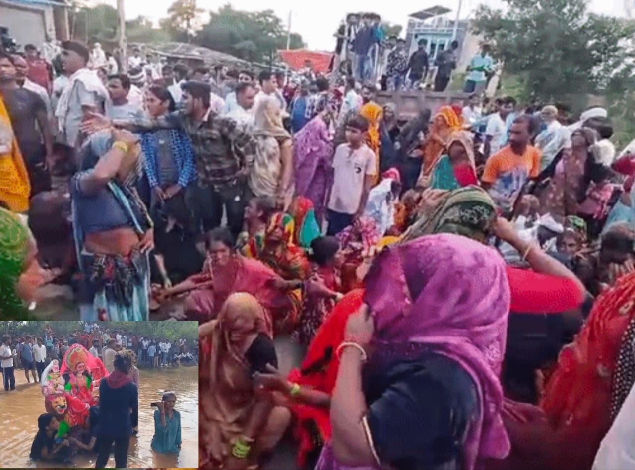 यह दुखद घटना खेरागढ़ के कुसियापुर डूगरवाला गांव की है, जहां दोपहर करीब 1 बजे मूर्ति विसर्जन के लिए ग्रामीण उटंगन नदी पहुंचे थे। विसर्जन के दौरान नदी का गहरा पानी कई युवकों के लिए जानलेवा साबित हुआ और देखते ही देखते 13 युवक पानी में डूब गए।