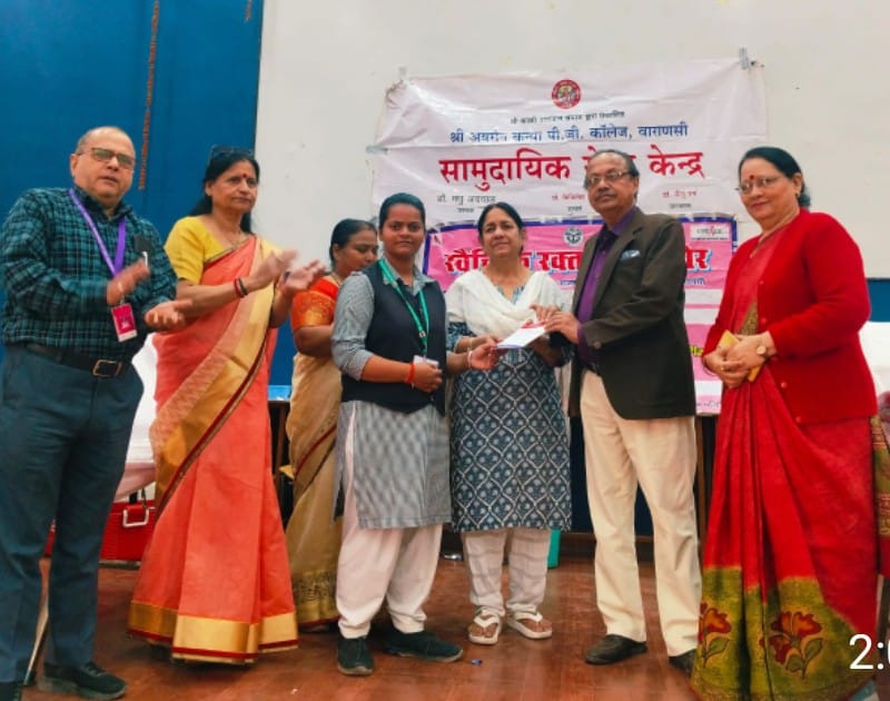 श्री अग्रसेन कन्या पी.जी. कॉलेज, वाराणसी के बुलानाला परिसर में महाविद्यालय के सामुदायिक सेवा केंद्र एवं दीनदयाल उपाध्याय राजकीय अस्पताल के संयुक्त तत्वावधान में स्वैच्छिक रक्तदान शिविर का आयोजन किया गया। इस अवसर पर अध्यक्ष श्री दीपक अग्रवाल ‘लायन’ ने छात्राओं को रक्तदान के लिए प्रेरित किया और कहा की रक्तदान महापुण्य का कार्य है यह न केवल जरूरतमंदों को नया जीवन देता है बल्कि नियमित रक्तदान से रक्तदाता का शारीरिक व मानसिक स्वास्थ्य भी अच्छा रहता है। प्रबंधक डॉ मधु अग्रवाल ने रक्तदान के लाभ को बताते हुए कहा की रक्तदान जीवन रक्षक का कार्य है। यह न केवल दूसरों को जीवन देता है बल्कि रक्तदाता के स्वास्थ्य के लिए भी लाभकारी है इससे आयरन का संतुलन बना रहता है जिससे हृदय रोग एवं स्ट्रोक का खतरा कम होता है। उन्होंने एंटीबायोटिक दवाओं के प्रयोग तथा उसके दुष्प्रभाव की भी जानकारी दी।इस अवसर पर महाविद्यालय की छात्राएं ज्योति दुबे, इशिता तिवारी, वैभवी जायसवाल, आंचल तिवारी, आंचल गुप्ता, सृष्टि तिवारी ने रक्तदान किया। कार्यक्रम में अध्यक्ष श्री दीपक अग्रवाल एवं प्रबंधक डॉ मधु अग्रवाल ने छात्राओं को सर्टिफिकेट भी प्रदान किया। इस अवसर पर दीनदयाल स्टाफ की टीम डॉ विजेंद्र सिंह, श्री रमेश चंद्र राय, श्री सत्येंद्र सिंह, प्रियंका गोस्वामी ,श्री सत्य प्रकाश सिंह, श्री नितेश यादव एवं शिव तथा महाविद्यालय के सामुदायिक केंद्र की समन्वयक डॉ नीलू गर्ग, सह समन्वयक डॉ भावना शर्मा, अधिष्ठाता छात्रा कल्याण प्रो अनीता सिंह, डॉ श्रृंखला, डॉ बंदनी, डॉ नीता दिशवाल, इत्यादि अनेक प्रवक्तागण तथा छात्राएं उपस्थित रही।