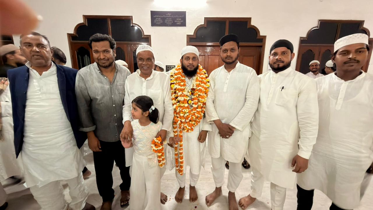 तरावीह की नमाज़ की इमामत हाफिज अबू हमज़ा साहब ने फरमाई और पूरे कुरआन शरीफ को मुकम्मल कराया। जैसे ही मुकम्मल होने का ऐलान हुआ, पूरा माहौल “अल्लाह-हु-अकबर” की सदाओं और भावुक दुआओं से गूंज उठा। नमाज़ियों ने हाफिज साहब को मुबारकबाद पेश करते हुए फूलों और दुआओं से नवाज़ा।