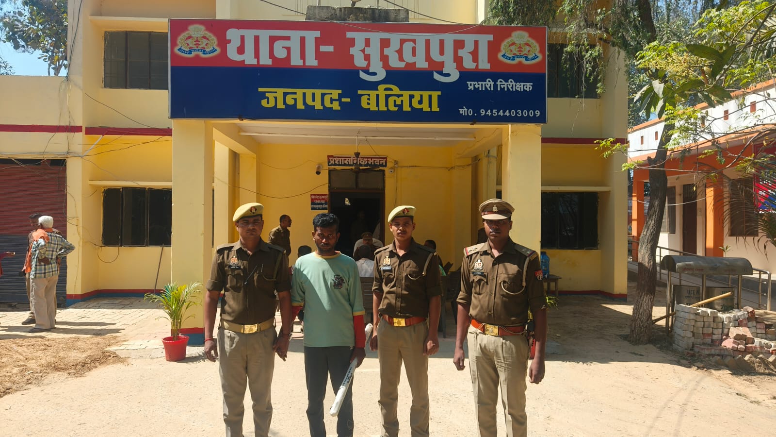 बलिया। सुखपुरा पुलिस ने गैर-इरादतन हत्या के मामले में वांछित अभियुक्त को मुखबिर की सूचना पर सोमवार को बसन्तपुर से यूनिवर्सिटी जाने वाले मार्ग पर नहर के पास से गिरफ्तार कर संबंधित धाराओं में न्यायालय भेज दिया।अभियुक्त के कब्जे और निशानदेही पर घटना में प्रयुक्त आला कत्ल (डण्डा) भी बरामद किया। पूछताछ में अभियुक्त ने अपना नाम व पता मिथुन साहनी पुत्र चांदगोविन्द साहनी निवासी बसन्तपुर थाना सुखपुरा जनपद बलिया बताया। थाना सुखपुरा पर वादी द्वारा तहरीर दी गई थी कि उसने अपनी पुत्री की शादी मिथुन साहनी निवासी ग्राम बसन्तपुर थाना सुखपुरा के साथ की थी। आरोप है कि 26 फरवरी की रात्रि में किसी बात को लेकर मिथुन साहनी ने अपनी पत्नी से विवाद किया और गुस्से में डण्डे से प्रहार कर दिया। गंभीर चोट लगने के कारण उसकी मौत हो गई। वादी के अनुसार, जब रात में कई बार फोन करने पर भी दामाद ने फोन नहीं उठाया तो वह उसके घर पहुंचा, जहां घटना की जानकारी हुई। सूचना मिलते ही थाना पुलिस मौके पर पहुंची और शव को कब्जे में लेकर पोस्टमार्टम के लिए जिला अस्पताल भेज दिया। प्राप्त तहरीर के आधार पर थाना सुखपुरा पर सुसंगत धाराओं में अभियोग पंजीकृत कर अभियुक्त की गिरफ्तारी के लिए टीमों का गठन किया गया था। तत्परता से कार्रवाई करते हुए पुलिस ने अभियुक्त को गिरफ्तार कर लिया।