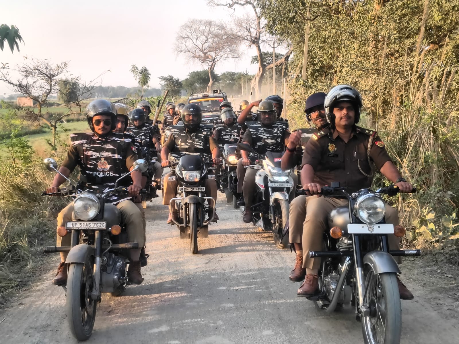 बलिया। होली त्यौहार के दृष्टिगत खेजुरी थानाध्यक्ष मिथिलेश कुमार के नेतृत्व में अपने हमराहियों तथा पुलिस सहकर्मियों के साथ मोटरसाइकिल से मिश्रित आबादी वाले गांव खेजुरी, मासूमपुर बहेरी, बालुपुर, हाथौज आदि स्थानों पर सोमवार के दिन रूट मार्च किया गया। होलिका दहन/ होली त्यौहार को सकुशल संपन्न कराने के लिए एरिया डोमिनेशन किया गया। उक्त अवसर पर थानाध्यक्ष मिथिलेश कुमार द्वारा दुकानदारों के साथ ग्रामीण इलाको के लोगों से होली त्यौहार शांति पूर्वक मनाने के लिए कहा गया। यह भी कहा गया की यदि कोई हुड़दंगई या अराजकता फैलाने की कोशिश करेगा उसके खिलाफ कानूनी रूप से सख्त कार्रवाई की जायेगी। इस रूट मार्च में मुख्य रूप से खेजुरी थाना के उपनिरीक्षक संदीप यादव, राजकुमार भारद्वाज, श्रीकृष्ण प्रजापति, अभिषेक यादव, राहुल यादव आदि दर्जनों कर्मी शामिल रहे।
