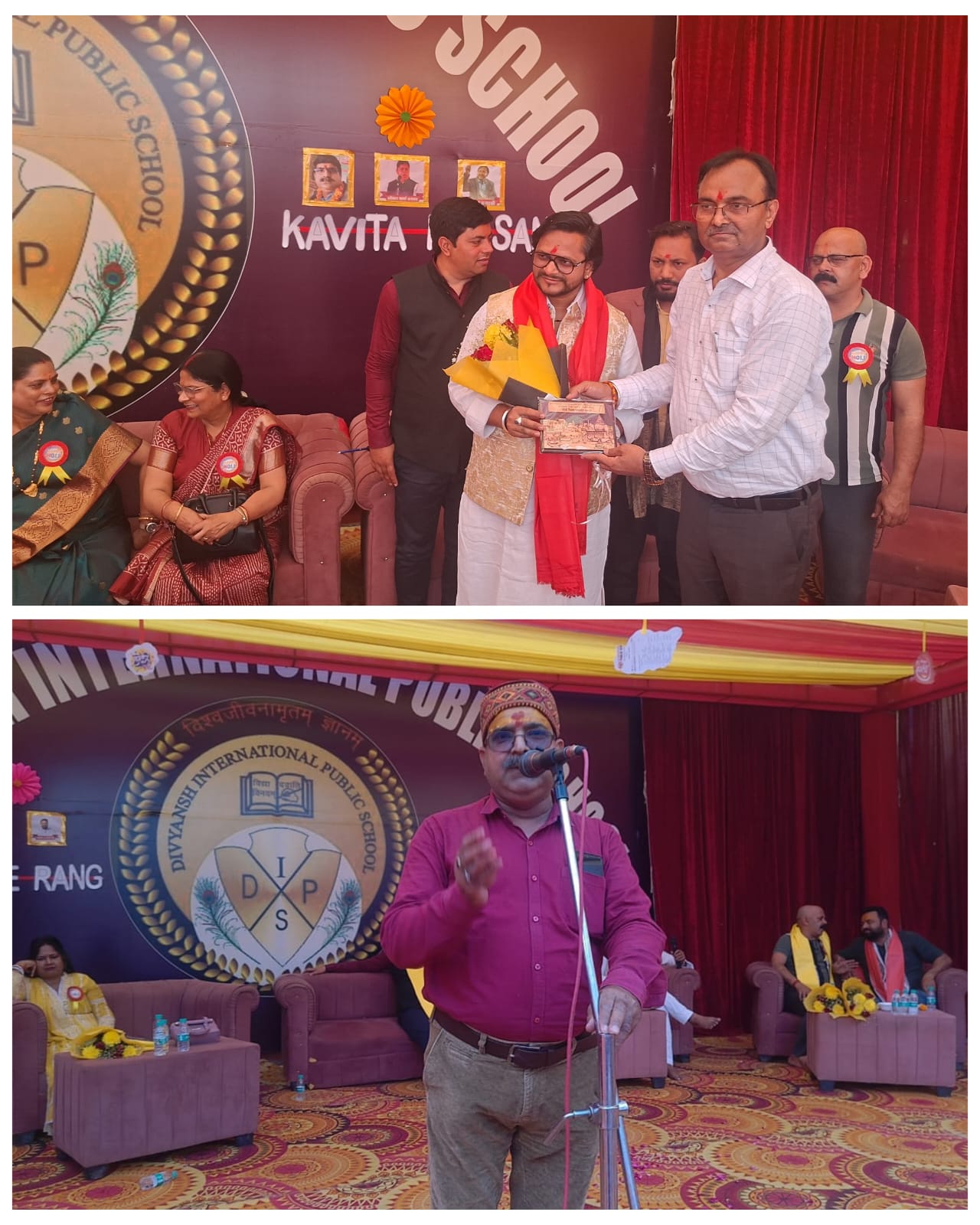 वाराणसी आज पहाड़िया-बेला रोड स्थित दिव्यांश इंटरनेशनल पब्लिक स्कूल के सभागार में होली मिलन समारोह का आयोजन हुआ। जिसमें देश के प्रमुख रचनाकारों ने हिस्सा लिया। इस अवसर पर कार्यक्रम के मुख्य अतिथि माननीय सांसद राज्यसभा श्रीमती साधना सिंह विशिष्ट अतिथि वाराणसी विकास प्राधिकरण के सदस्य अम्बरीष सिंह भोला रहे।कार्यक्रम की अध्यक्षता विद्यालय के निदेशक सीमा सिंह ने किया ने किया। कार्यक्रम की शुरुआत मुख्य अतिथियों द्वारा मां सरस्वती के चित्र पर माल्यार्पण व दीप प्रज्जवलित कर किया गया। इस मौके पर मुख्य अतिथि राज्यसभा सांसद साधना सिंह ने कहा कि इस प्रकार के सांस्कृतिक कार्यक्रम विद्यार्थियों में आत्मविश्वास और रचनात्मकता को बढ़ावा देते हैं। तत्पश्चात देश जाने माने कवियों ने अपनी हास्य की फुहार होली मिलन समारोह में उपस्थित जन समुदाय को गुदगुदा कर लोट पोट कर दिया। काव्य पाठ करने वाले कवियों में मुख्य रूप से दमदार बनारसी, नागेश शांडिल्य, डॉ सुरेश अकेला,प्रशांत बजरंगी, ओंकार शर्मा कश्यप, सादिया एकरा सहित अन्य कवियों ने एक से बढ़कर अपनी रचनाएं सुनाई। कवि सम्मेलन का संचालन दमदार बनारसी ने किया। इस अवसर पर आयोजित पत्रकार वार्ता को संबोधित करते हुए विद्यालय की निदेशक सीमा सिंह एवं प्रधानाचार्य निम्मी चतुर्वेदी ने बताया कि इस वर्ष विद्यालय में सी.बी.एस.ई. की कक्षा 11वीं में विज्ञान, वाणिज्य तथा मानविकी संकाय की पढ़ाई प्रारंभ की जाएगी। विद्यालय की निदेशक सीमा सिंह ने कहा कि छात्रों के सर्वांगीण विकास के लिए विद्यालय हमेशा अग्रसर है साथ ही नए प्रवेश लेने वाले विद्यार्थियों का प्रवेश निःशुल्क हैं और टॉपर बच्चों को स्कॉलरशिप भी प्रदान की जाएगी।