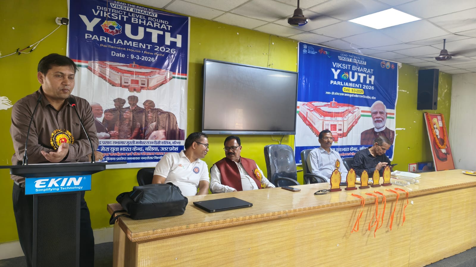 बलिया। मेरा युवा भारत, युवा कार्यक्रम एवं खेल मंत्रालय भारत सरकार के तत्वावधान में सोमवार को नगर स्थित श्री मुरली मनोहर टाउन स्नातकोत्तर महाविद्यालय के राजेंद्र प्रसाद सभागार में विकसित भारत जिला युवा संसद का आयोजन किया गया। कार्यक्रम में जनपद के विभिन्न विकास खंडों से आए प्रतिभागियों ने उत्साहपूर्वक भाग लिया। कार्यक्रम का शुभारंभ महाविद्यालय के प्राचार्य प्रो. दयाला नंद राय एवं प्रो. अशोक सिंह ने स्वामी विवेकानंद के चित्र पर पुष्प अर्पित कर तथा दीप प्रज्वलित कर किया। युवा संसद के अंतर्गत आयोजित भाषण प्रतियोगिता का विषय “आपातकाल के 50 वर्ष: भारतीय लोकतंत्र के लिए सिख” रहा, जिस पर प्रतिभागियों ने अपने विचार प्रभावशाली ढंग से प्रस्तुत किए। प्रतियोगिता में आकांक्षा मिश्रा ने प्रथम स्थान प्राप्त किया। वहीं दूसरे स्थान पर राजू कुमार यादव, तीसरे स्थान पर शिप्रा सिंह, चौथे स्थान पर मोनिका गुप्ता और पांचवें स्थान पर महक पांडे रहीं। ये पांचों विजेता प्रतिभागी इसी माह लखनऊ में आयोजित होने वाली राज्य स्तरीय विकसित भारत युवा संसद प्रतियोगिता में विधानसभा में प्रतिभाग करेंगे। विजेता प्रतिभागियों को वरिष्ठ कोषाधिकारी आनंद दुबे एवं एडीएम ( नमामि गंगे) रजीत राम गुप्ता ने संयुक्त रूप से प्रशस्ति पत्र देकर सम्मानित किया। इस अवसर पर युवाओं को संबोधित करते हुए महाविद्यालय के प्राचार्य प्रो. दयाला नंद राय ने कहा कि युवाओं में अपार शक्ति होती है और उनकी क्षमता का उपयोग राष्ट्र निर्माण के लिए अत्यंत आवश्यक है। एडीएम रजीत राम गुप्ता ने कहा कि युवाओं को सदैव अपने लक्ष्य के प्रति सचेत रहने की आवश्यकता है। वरिष्ठ कोषाधिकारी आनंद दुबे ने कहा कि मजबूत लोकतंत्र राष्ट्र के उत्थान में सहायक होता है। उन्होंने युवाओं से अपनी क्षमताओं को पहचानकर आगे बढ़ने का आह्वान किया। कार्यक्रम के आयोजक मेरा युवा भारत के निदेशक कपिल देव ने सभी अतिथियों का अंगवस्त्र व माल्यार्पण कर स्वागत किया। प्रतियोगिता के निर्णायक मंडल में वरिष्ठ पत्रकार के.के. पाठक, डॉ. के.के. सिंह, डॉ. रामकुमार और डॉ. आनंद द्विवेदी शामिल रहे। इस मौके पर मेरा युवा भारत बलिया से नवीन सिंह, गुप्तेश्वर प्रसाद, ओंकार सिंह, हिमांशु सहित अन्य लोग उपस्थित रहे। कार्यक्रम का संचालन नितेश पाठक ने किया, आभार ज्ञापन मेरा युवा भारत के निदेशक कपिल देव ने व्यक्त किया।