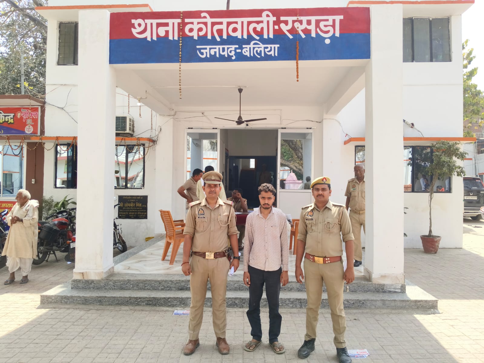 बलिया। पुलिस अधीक्षक ओमवीर सिंह के निर्देशन में अपराध एवं अपराधियों के खिलाफ चलाये जा रहे अभियान में प्रभारी निरीक्षक रसड़ा योगेन्द्र बहादुर सिंह के नेतृत्व में रसड़ा पुलिस की मिली सफलता। उल्लेखनीय है कि वादिनी द्वारा प्रार्थना पत्र देकर अवगत कराया कि राजू प्रजापति निवासी मेरू राय का पुरा द्वारा शादी का झांसा देकर करीब 07 वर्ष से शारीरिक संबंध बनाता रहा। वादिनी द्वारा शादी करने की बात कही गयी तो राजू प्रजापति ने शादी करने से इंकार कर दिया तथा जान से मारने की धमकी दिया था। इस सम्बन्ध में रसड़ा पुलिस द्वारा सुसंगत धाराओं में अभियोग पंजीकृत कर अभियुक्त की गिरफ्तार हेतु टीमें लगा दी गयी थी। इसी क्रम में शुक्रवार को उपनिरीक्षक कुलदीप कुमार अपने हमराह रविंद्र यादव के क्षेत्र में थे इसी दौरान मुखबिर की सूचना पर पाक्सो एक्ट से सम्बन्धित अभियुक्त राजू प्रजापति पुत्र हरिहर प्रजापति निवासी मेरू राय का पुरा थाना रसडा जनपद बलिया उम्र करीब (26) वर्ष को रेलवे स्टेशन रसड़ा के पास से गिरफ्तार किया गया। गिरफ्तार अभियुक्त के विरुद्ध विधिक कार्यवाही करते हुए न्यायालय भेजा गया।