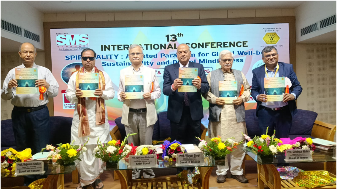 वाराणसी, स्कूल ऑफ मैनेजमेंट साइंसेज में तेरहवें दो दिवसीय अंतरराष्ट्रीय कॉन्फ्रेंस का शुभारम्भ हुआ | इस दो दिवसीय अंतरराष्ट्रीय कॉन्फ्रेंस का मुख्य विषय आध्यात्मिकता: वैश्विक कल्याण, सततता और डिजिटल सजगता के लिए एक सिद्ध प्रतिमान है | दो दिवसीय अंतरराष्ट्रीय कॉन्फ्रेंस के उदघाटन सत्र में बतौर मुख्य अतिथि उपस्थित काशी हिन्दू विश्वविद्यालय वाराणसी के कुलपति प्रो० अजित कुमार चतुर्वेदी ने कहा कि आध्यात्मिकता केवल किसी एक परंपरा या धर्म तक सीमित विषय नहीं है, बल्कि यह हर मानव के जीवन से जुड़ा एक मूलभूत आयाम है। उन्होंने कहा कि ऐसे सम्मेलन युवा पीढ़ी को यह समझाने का महत्वपूर्ण अवसर प्रदान करते हैं कि आध्यात्मिकता केवल अतीत की धरोहर नहीं है, बल्कि इसका आधुनिक विज्ञान और समकालीन समाज से भी गहरा संबंध है। वर्तमान वैश्विक संकटों के दौर में भारत ने जिस प्रकार विकास और संतुलन का मार्ग प्रस्तुत किया है, वह पूरे विश्व के लिए प्रेरणादायक है। अध्यात्म्कता और वैश्विकता के मध्य सम्बन्ध स्थापित करते हुए प्रो. चतुर्वेदी ने कहा कि सच्ची आध्यात्मिक समझ तभी विकसित होती है, जब हम विभिन्न संस्कृतियों, परंपराओं और धर्मों का अध्ययन और सम्यक् समझ विकसित करें। यदि हम केवल एक ही परंपरा तक सीमित रहेंगे, तो ज्ञान का दायरा संकुचित रह जाएगा। विविध परंपराओं के अध्ययन से न केवल पूर्वाग्रह कम होते हैं, बल्कि शोध के नए प्रश्न और दृष्टिकोण भी सामने आते हैं। उन्होंने खुशी जताई कि स्कूल ऑफ़ मैनेजमेंट साइंसेज वाराणसी, आज आध्यात्मिकता, समावेशिता और प्राचीन ज्ञान को आधुनिक तकनीकी प्रगति से जोड़ने का प्रयास कर रहा है |