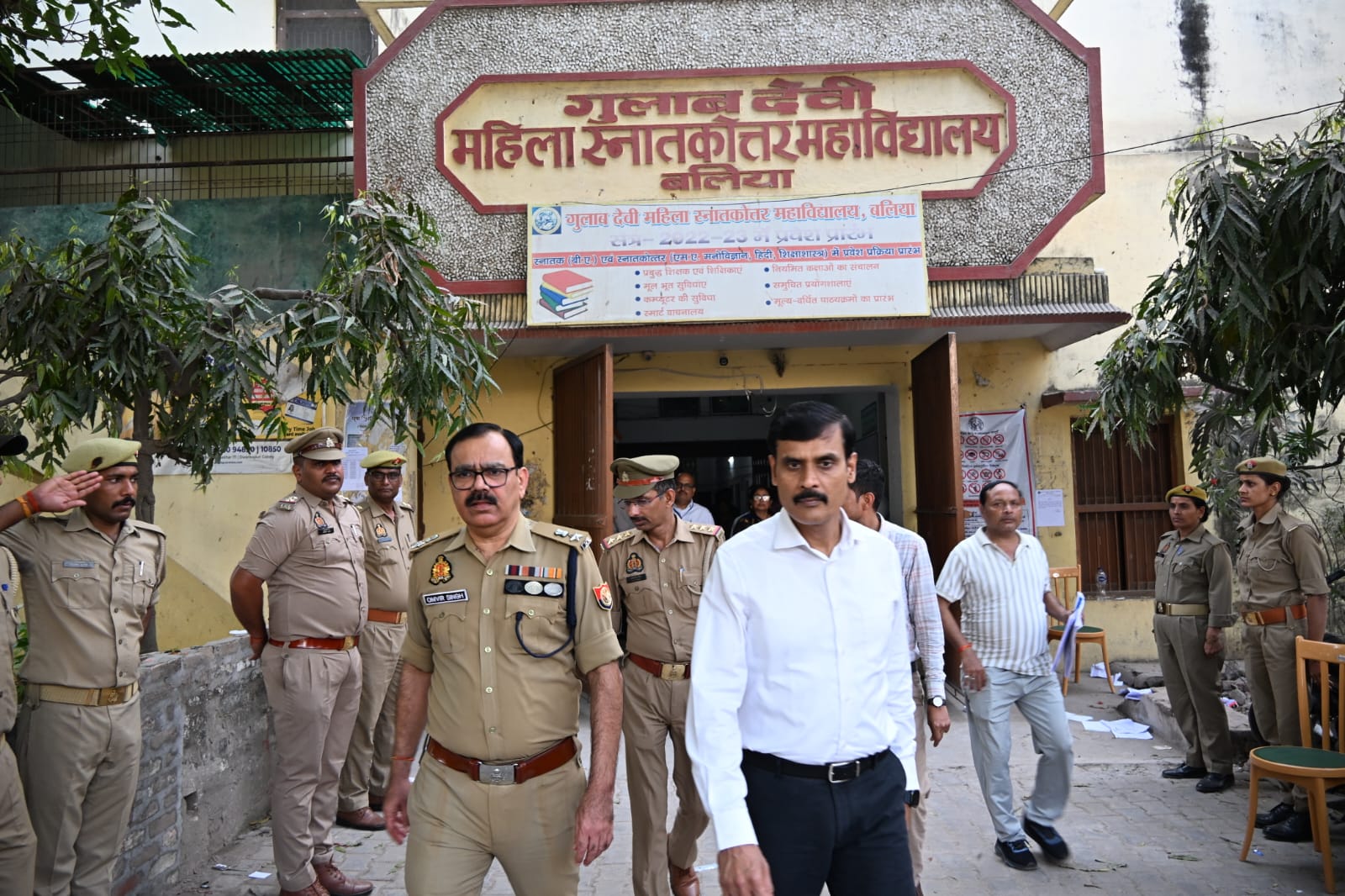 बलिया। उत्तर प्रदेश पुलिस में सब-इंस्पेक्टर भर्ती परीक्षा के मद्देनज़र शनिवार को जिलाधिकारी मंगला प्रसाद सिंह और पुलिस अधीक्षक ओमवीर सिंह ने विभिन्न परीक्षा केंद्रों का निरीक्षण कर व्यवस्थाओं का जायजा लिया। उन्होंने सतीश चंद्र डिग्री कॉलेज तथा गुलाब देवी महिला स्नातकोत्तर महाविद्यालय पहुंचकर परीक्षा केंद्रों की व्यवस्थाओं का निरीक्षण किया। इस दौरान उन्होंने कंट्रोल रूम का भी निरीक्षण किया और वहां हो रही गतिविधियों की रिकॉर्डिंग को सुरक्षित रखने के निर्देश दिए। निरीक्षण के दौरान जिलाधिकारी और पुलिस अधीक्षक ने परीक्षा केंद्रों के सभी कक्षों में जाकर चल रही परीक्षा की स्थिति देखी तथा व्यवस्थाओं का जायजा लिया। उन्होंने वहां मौजूद कर्मचारियों से बायोमेट्रिक व्यवस्था के बारे में विस्तृत जानकारी प्राप्त की। अधिकारियों ने यह भी जानकारी ली कि परीक्षा में कुल कितने परीक्षार्थी उपस्थित हुए और कितने अनुपस्थित रहे। साथ ही परीक्षा को निष्पक्ष और शांतिपूर्ण ढंग से संपन्न कराने के लिए आवश्यक दिशा-निर्देश भी दिए। प्रशासनिक अधिकारियों ने परीक्षा केंद्रों पर सुरक्षा व्यवस्था और अन्य व्यवस्थाओं को संतोषजनक बताते हुए जिम्मेदार कर्मियों को सतर्कता के साथ ड्यूटी निभाने के निर्देश दिए।