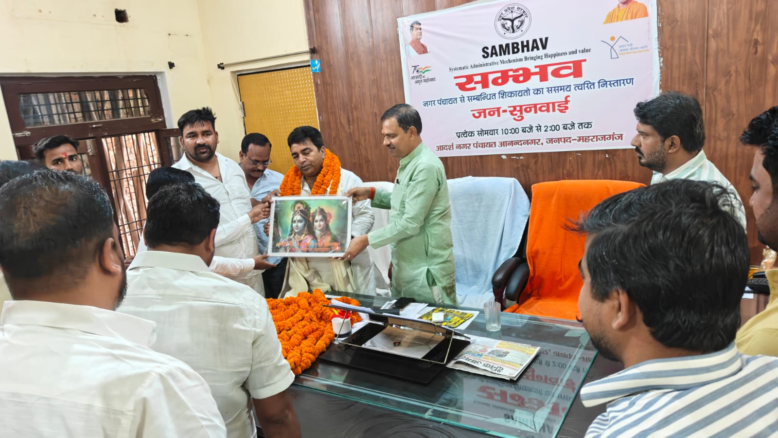 महराजगंज। नगर पंचायत कार्यालय। फरेंदा विधायक वीरेंद्र चौधरी का सोमवार को सभी सभासदों ने गर्मजोशी से स्वागत किया। इस दौरान #गौतमबुद्ध_व्यवसायिक_भवन के तीन मंजिला पुनर्निर्माण प्रस्ताव पर विस्तृत बातचीत हुई।नगर के इस प्रमुख व्यावसायिक केंद्र में 126 आधुनिक दुकानों सहित बहुमंजिला भवन बनेगा। विधायक चौधरी व सभासदों ने निर्माण योजना, फंडिंग, समयसीमा व सुविधाओं पर गहन मंथन किया। व्यापारियों को बेहतर माहौल व नागरिकों को आधुनिक सुविधाएं देने का लक्ष्य है।सभासदों के अनुसार, परियोजना से स्थानीय अर्थव्यवस्था मजबूत होगी। पार्किंग, लिफ्ट व सुरक्षा जैसी सुविधाओं पर विशेष जोर। विधायक ने तत्काल मंजूरी व सहयोग का भरोसा दिलाया।चर्चा में ये हुए फैसलेबजट व सरकारी अनुदान पर सहमति।पर्यावरण-अनुकूल डिजाइन।व्यापारियों का पुनर्वास।सड़क-जल निकासी उन्नयन।कार्यक्रम भोज व स्मृति चिन्ह भेंट के साथ संपन्न। नगर पंचायत ने इसे विकास की नई दिशा बताया।