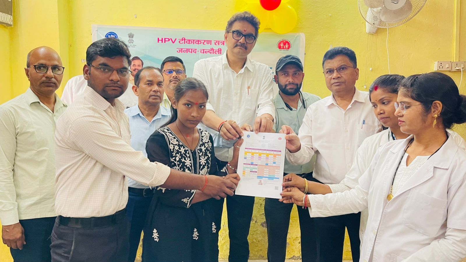 चंदौली।जनपद में नियमित टीकाकरण कार्यक्रम के अंतर्गत एचपीवी (HPV) वैक्सीन का आज शुभारंभ किया गया। इस अभियान की शुरुआत मुख्य चिकित्सा अधिकारी डा० वाई० के० राय द्वारा प्राथमिक स्वास्थ्य केन्द्र चंदौली में फीता काटकर की गई।