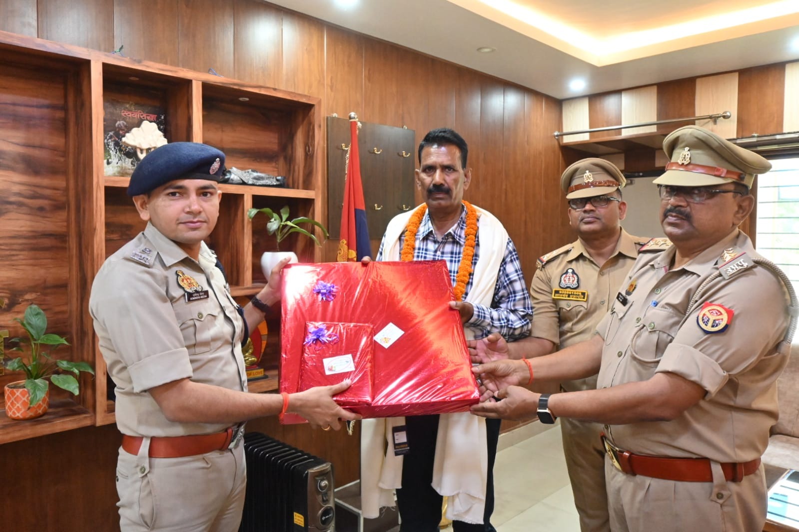 पुलिस कार्यालय महराजगंज में सोमवार को आयोजित सेवानिवृत्ति सम्मान समारोह भावुक क्षणों का साक्षी बना, जब अपनी अधिवर्षता आयु पूर्ण कर सेवानिवृत्त हुए एक पुलिस कर्मी को पूरे सम्मान और गरिमा के साथ विदाई दी गई। इस अवसर पर माननीय पुलिस अधीक्षक महराजगंज ने उन्हें प्रतीक चिन्ह भेंट कर उनके दीर्घ सेवा-काल की सराहना की।