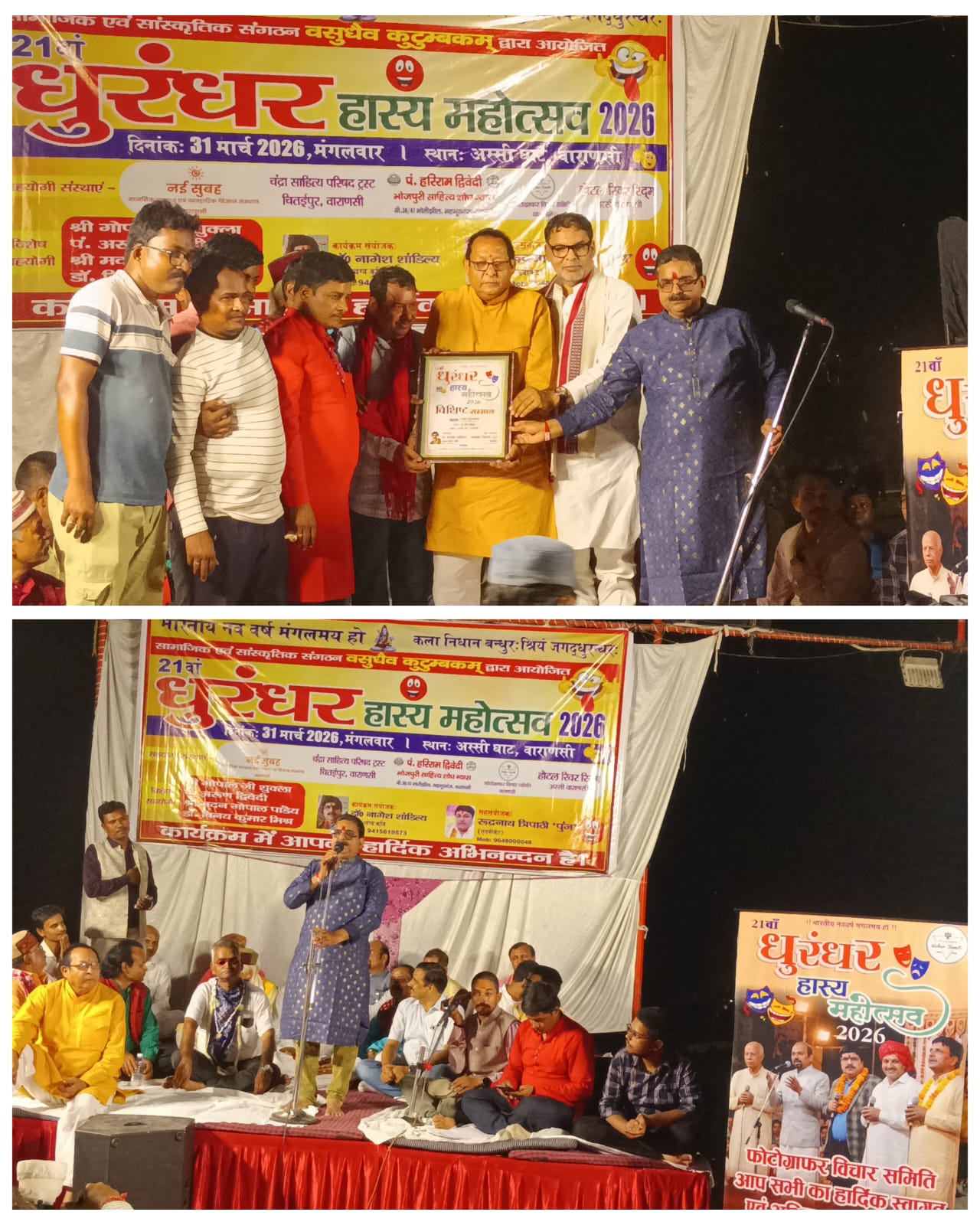 मूर्ख दिवस की पूर्व सन्ध्या पर अस्सी घाट (पुराना) पर वसुधैव कुटुम्बकम के बैनर तले इक्कीसवें धुरन्धर हास्य महोत्सव का भव्य आयोजन किया गया।