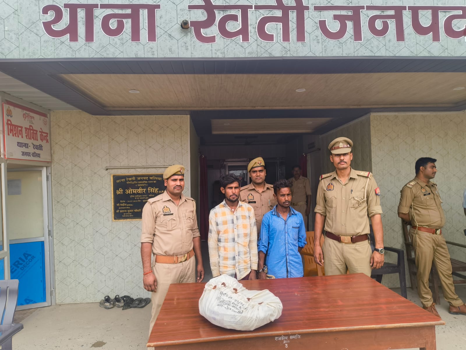 बलिया। जनपद की रेवती पुलिस ने चोरी के आरोप में दो अभियुक्तों को गिरफ्तार किया है। पुलिस ने उनके कब्जे से चोरी की गई पीली धातु की दो थालियां, एक परात और एक लोटा बरामद किया है। पुलिस अधीक्षक ओमवीर सिंह के निर्देश पर जनपद में अपराध नियंत्रण के लिए चलाए जा रहे अभियान के तहत यह कार्रवाई की गई। 3 मार्च को रेवती थाने में एक शिकायत दर्ज कराई गई थी, जिसमें वादी ने बताया था कि उनके घर के कमरे से फूल के बर्तन और गहने चोरी हो गए थे। इस संबंध में सुसंगत धाराओं में मुकदमा पंजीकृत कर विवेचना शुरू की गई थी। विवेचना के क्रम में, 4 अप्रैल को उपनिरीक्षक अवनीश त्रिपाठी के नेतृत्व में रेवती पुलिस टीम संदिग्ध व्यक्तियों और वाहनों की चेकिंग कर रही थी। मुखबिर की सूचना पर, पुलिस ने कोलनाला तिराहा के पास से दो अभियुक्तों को दोपहर 2:45 बजे गिरफ्तार किया। गिरफ्तार किए गए अभियुक्तों की पहचान भोला प्रसाद (28 वर्ष) पुत्र अनंत प्रसाद और शैलेश कुमार (25 वर्ष) पुत्र देवमुनि प्रसाद के रूप में हुई है। ये दोनों बिन्द टोली तिवारी की मिल्की, रानीगंज, थाना बैरिया, जनपद बलिया के निवासी हैं। अभियुक्तों के कब्जे से चोरी की गई पीली धातु की दो थालियां, एक परात और एक लोटा बरामद किया गया। पुलिस ने नियमानुसार आवश्यक विधिक कार्यवाही करते हुए दोनों अभियुक्तों को न्यायालय में पेश किया।