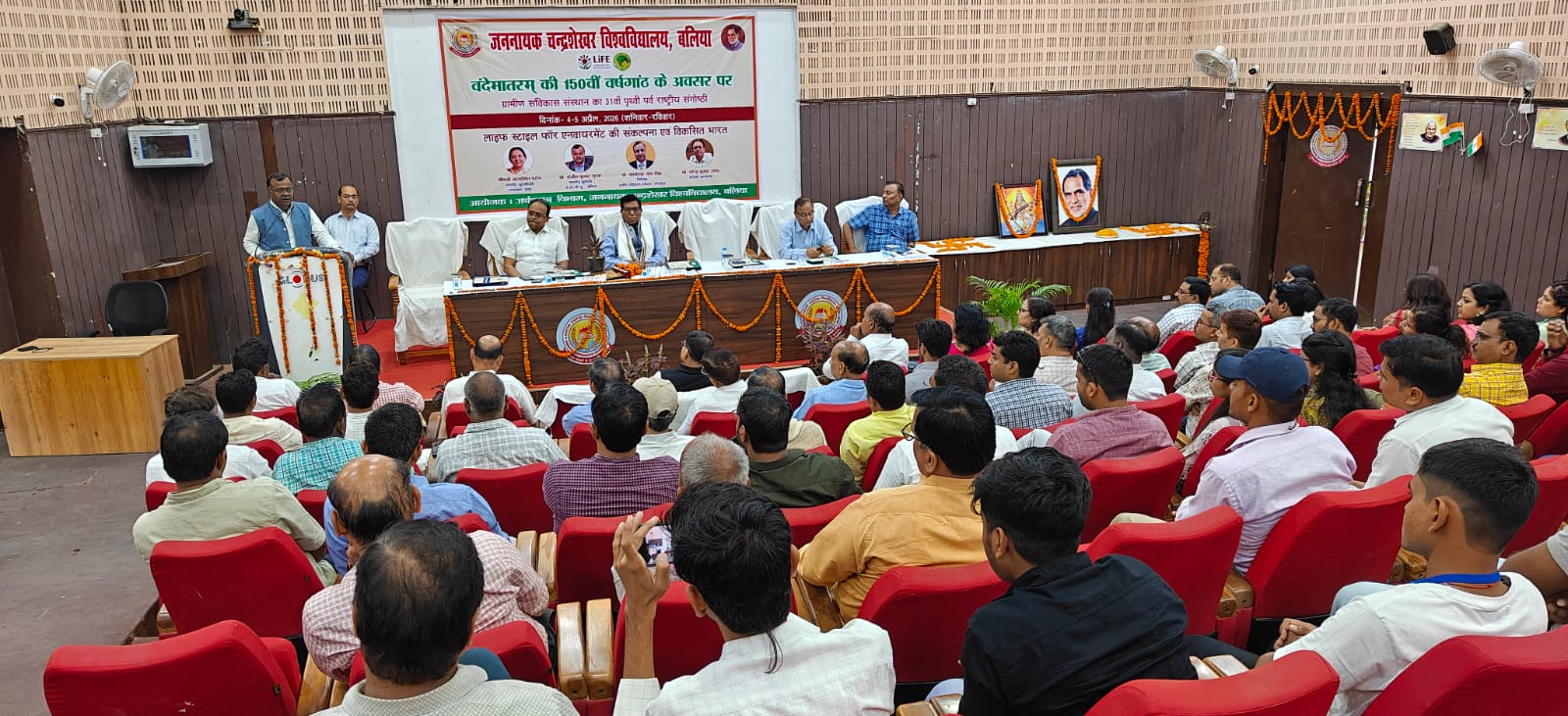 बलिया। वन्देमातरम् की 150 वी वर्षगांठ के अवसर पर ग्रामीण संविकास संस्थान एवं अर्थशास्त्र विभाग, जननायक चन्द्रशेखर विश्वविद्यालय के संयुक्त तत्वाधान में 31 वें पृथ्वी पर्व पर दो दिवसीय (04-05, 2026) राष्ट्रीय संगोष्ठी का रविवार को समापन हुआ। राष्ट्रीय संगोष्ठी के द्वितीय दिवस प्रथम सत्र में बलिया के कृषि विकास का रोडमैप विषय पर परिचर्चा हुई। प्रो. अशोक कुमार सिंह ने बताया कि बलिया की मृदा में पोषक तत्वों की कमी है जिसे दूर करने के लिए खर-पतवार, गोबर, केंचुए आदि से बनी खाद का प्रयोग कर अच्छी पैदावार प्राप्त की जा सकती है। प्रो. बृजेश सिंह ने बताया कि किसानों की आय बढ़ाने के लिए परंपरागत फसलों के साथ फल-फूल की खेती, मत्स्य पालन, मधुमक्खी पालन आदि का प्रयोग कर किसानों की आय बढ़ाई जा सकती है। डॉ. जे पी सिंह, डॉ. हेमंत कुमार सिंह, डॉ. ए. पी. सिंह, डॉ. रामतीरथ, डॉ. मुनेन्द्र गंगवार ने अपने विचार रखे। बताया कि पारंपरिक खेती के साथ बागवानी, डेयरी, मशरूम, ड्रैगन फ्रूट, औषधीय पौधों की खेती से किसानों की आय बढ़ाई जा सकती है। सत्र की अध्यक्षता प्रो. यू. पी. सिंह, निदेशक, कृषि विज्ञान संस्थान, बीएचयू ने और संचालन डॉ. अनुराधा राय ने किया। द्वितीय सत्र की अध्यक्षता डॉ. गणेश कुमार पाठक ने की। कहा कि कृषि उत्पादों के बेहतर भण्डारण और प्रसंस्करण आधारित उद्योगों की स्थापना से बलिया का विकास संभव है। इस सत्र में प्रो. संजय त्रिपाठी, डॉ. अनिल कुमार तिवारी, डॉ. आशिया परवीन आदि ने पर्यावरण एवं संपोषणीय जीवन शैली पर अपने विचार रखे।