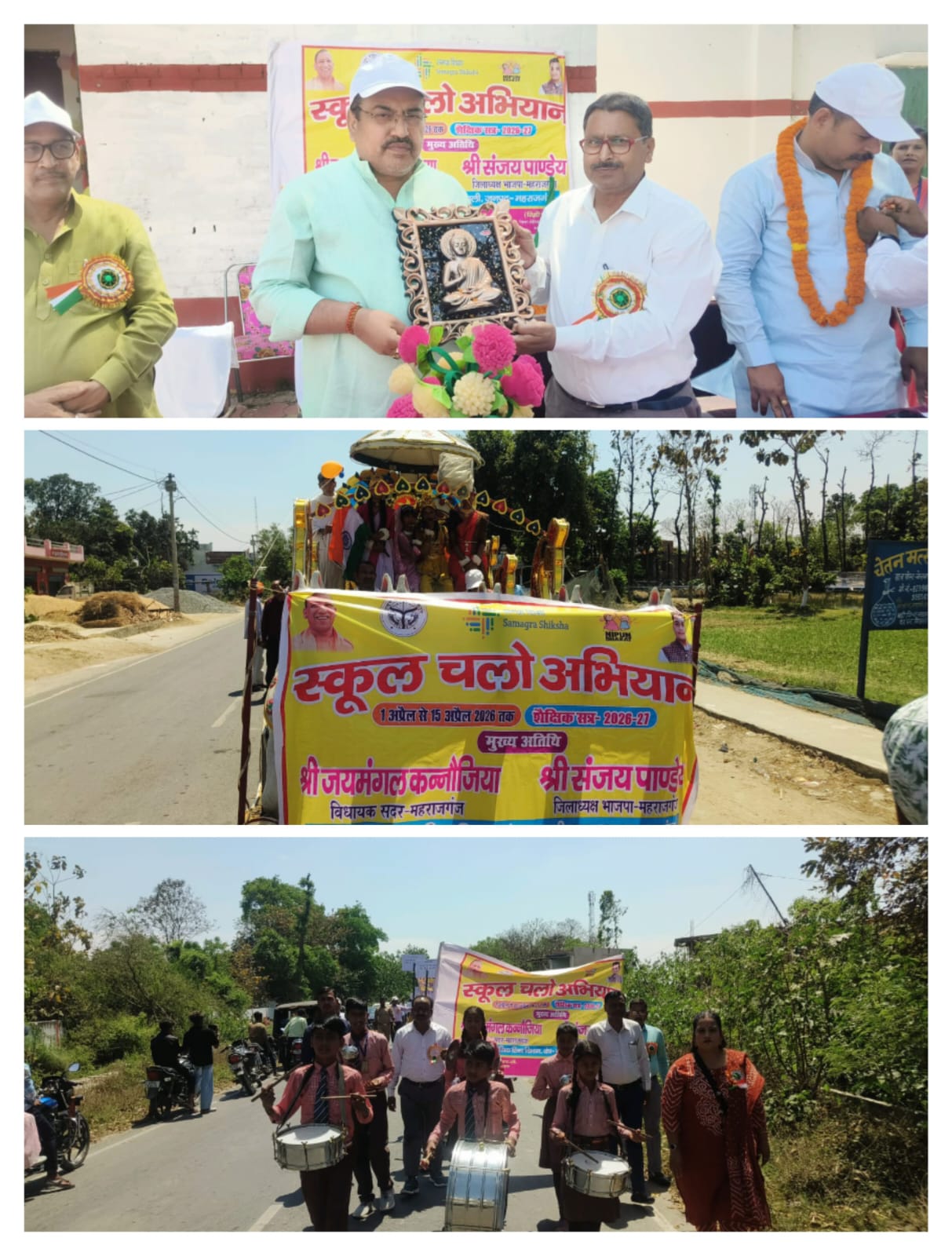 महराजगंज जनपद के घुघली विकास खंड में ‘स्कूल चलो अभियान’ के अंतर्गत शत-प्रतिशत नामांकन सुनिश्चित करने और शिक्षा के प्रति जनजागरूकता फैलाने हेतु भव्य रैली का आयोजन किया गया। रैली का नेतृत्व सदर विधायक जयमंगल कन्नौजिया एवं भाजपा जिलाध्यक्ष संजय पाण्डेय ने किया।