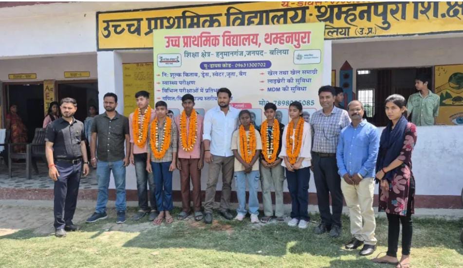 बलिया। शिक्षा क्षेत्र हनुमानगंज के उच्च प्राथमिक विद्यालय थम्हनपुरा में अध्ययनरत 8वीं के छः छात्र-छात्राओं ने सर्वोदय विद्यालय वाराणसी एवं गाजीपुर में चयनित होकर अपने माता-पिता के साथ ही विद्यालय का मान बढ़ाया है। सफल बच्चों में अभिषेक, कृष्ण कुमार गौतम, अंशु कुमार भारती एवं दिव्या, राजनंदनी व पायल शामिल हैं। प्रधानाध्यापक अरविंद कुमार के साथ विद्यालय के सभी शिक्षकों ने सफल बच्चों को सम्मानित करते हुए उनका उत्साहवर्धन किया। प्रधानाध्यापक अरविंद कुमार ने बताया कि गत वर्ष की तरह इस वर्ष भी विद्यालय के छात्र-छात्राओं का चयन होना विद्यालय परिवार के लिए गर्व की बात है। उन्होंने विद्यालय के शिक्षक आशीष तिवारी, शैलेंद्र कुमार वर्मा, शशि रंजन चौबे एवं सौरभ कुमार के प्रयासों के प्रति आभार व्यक्त किया। इसके इतर विद्यालय विकास में थम्हनपुरा प्रधान, लेखपाल एवं अन्य लोगों का भारी सहयोग प्राप्त हुआ।