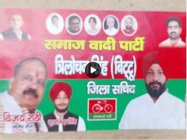 पैकेट पर समाजवादी पार्टी का स्टिकर लगा था