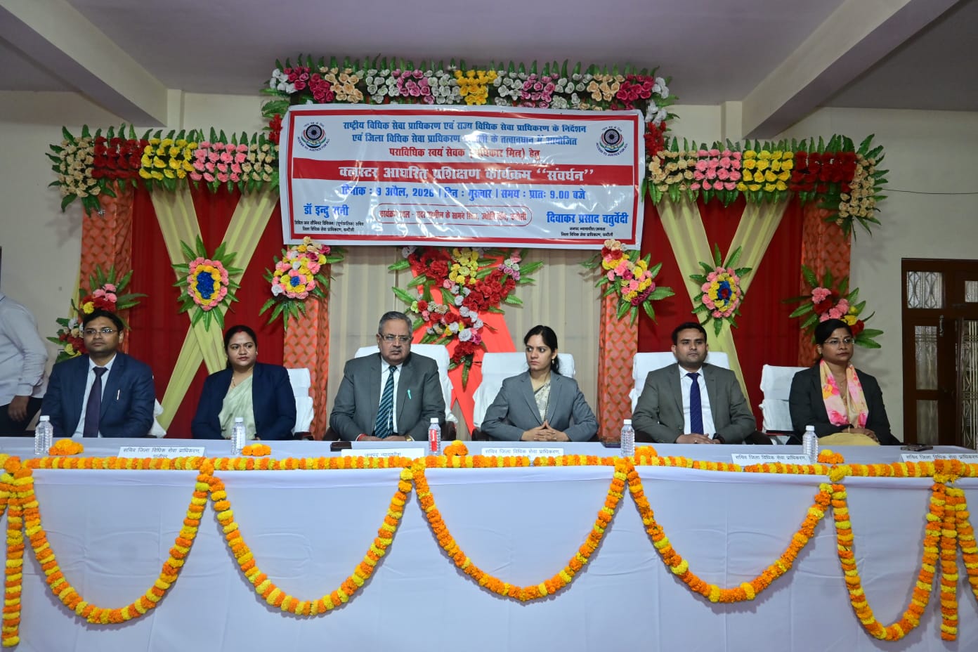 कार्यक्रम का शुभारंभ जनपद न्यायाधीश दिवाकर प्रसाद चतुर्वेदी द्वारा दीप प्रज्ज्वलन एवं सरस्वती पूजा के साथ किया गया। इस अवसर पर न्यायिक अधिकारियों एवं विधिक सेवा प्राधिकरण के पदाधिकारियों की गरिमामयी उपस्थिति रही।