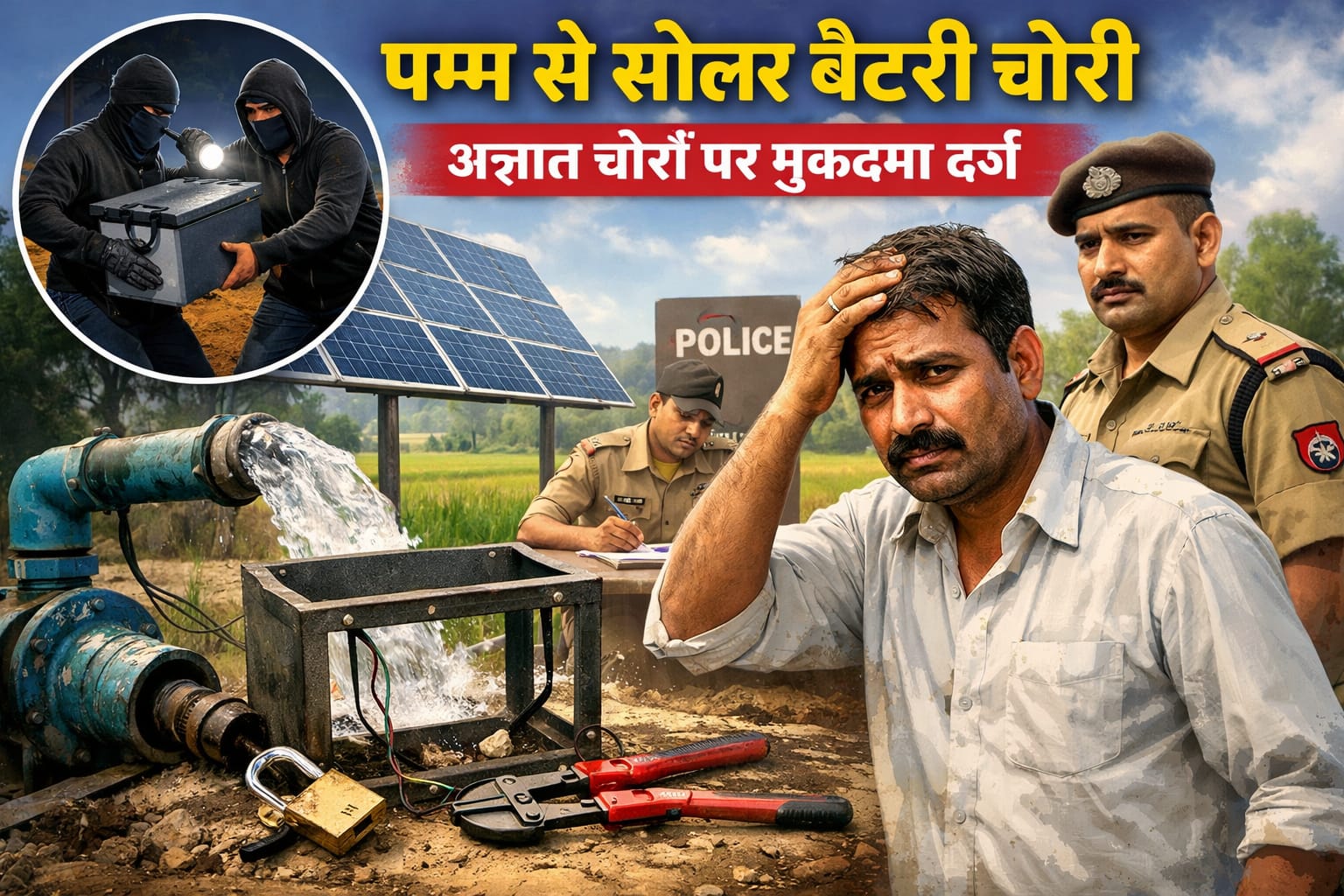 प्राप्त जानकारी के अनुसार महदा गांव निवासी दिलीप सिंह पुत्र दयाशंकर सिंह, जो पम्प आपरेटर हैं, ने अपने पम्प पर सोलर बैटरी लगाई थी। आरोप है कि 6 अप्रैल 2026 की रात किसी अज्ञात चोर ने पम्प का ताला काटकर सोलर बैटरी चोरी कर ली। सुबह जब दिलीप सिंह पम्प चलाने पहुंचे तो बैटरी गायब मिली, जिसके बाद उन्होंने 9 अप्रैल को पुलिस को सूचना दी।