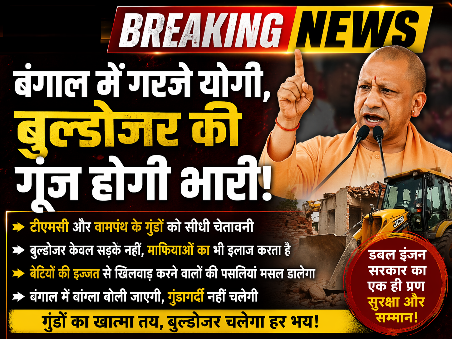 🔸 “बंगाल में गुंडों का इलाज यूपी का बुल्डोजर करेगा”