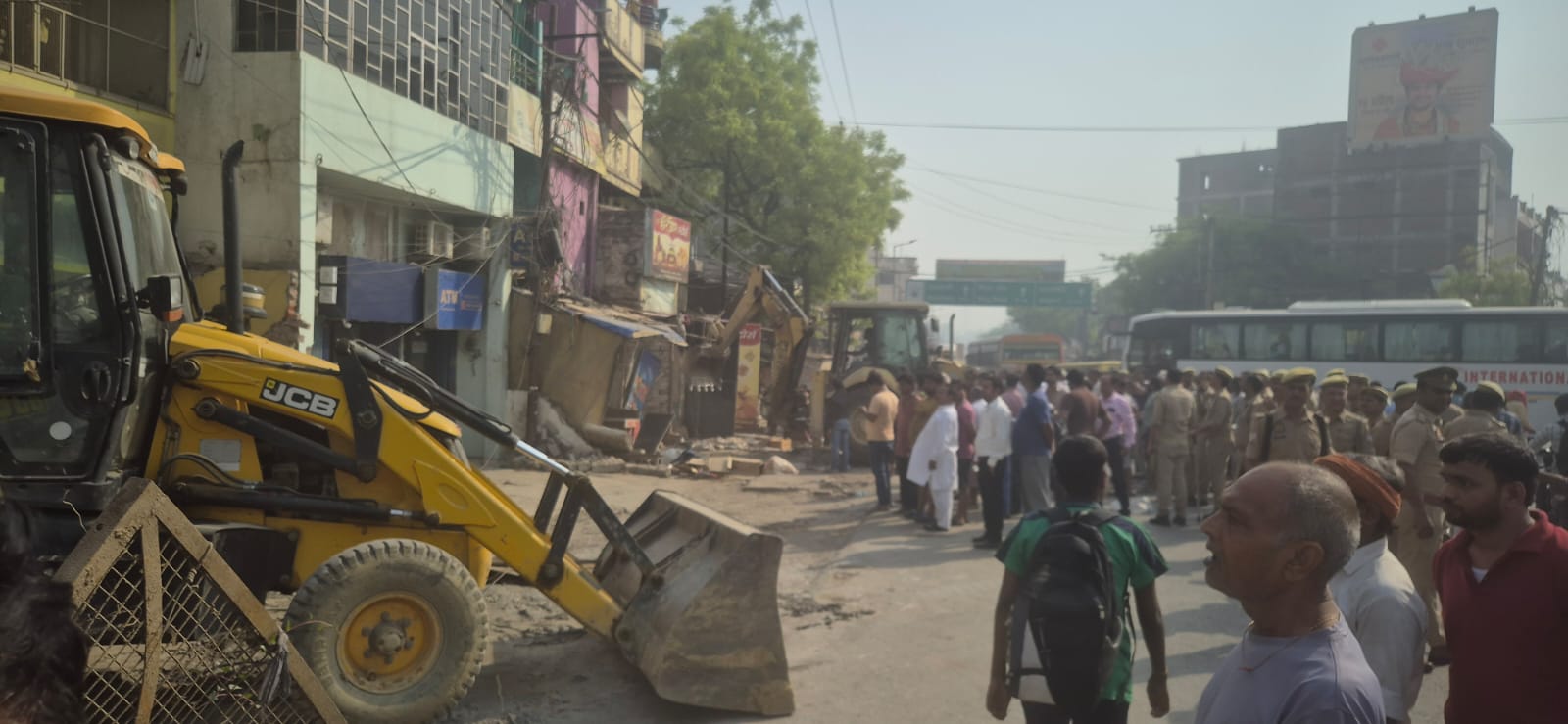 6 लेन सड़क निर्माण के लिए मकानों व दुकानों पर चला बुलडोजर