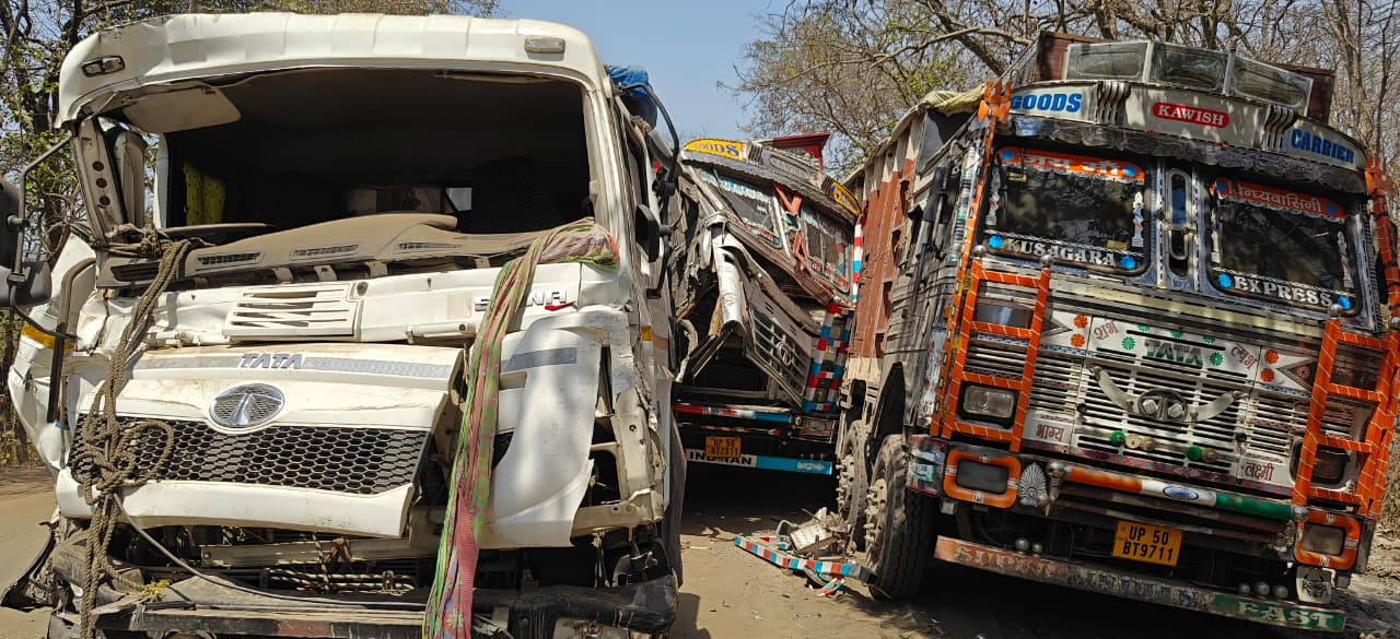 पहला हादसा थाना पिपरी क्षेत्र के अंतर्गत वन देवी और गढ़ा बैरियर के बीच हुआ, जहां तीन भारी वाहन आपस में टकरा गए। जानकारी के अनुसार, एक ट्रक सड़क किनारे खड़ी थी और दूसरी ट्रक रेणुकूट की ओर आ रही थी। इसी दौरान एक ट्रेलर ने ओवरटेक करने का प्रयास किया, तभी सामने से वाहन आ गया। अचानक स्थिति बिगड़ने पर ट्रेलर चालक ने वाहन को दूसरी ओर मोड़ा, जिससे वह अनियंत्रित होकर खड़ी ट्रक से टकरा गया और दोनों वाहनों के बीच फंस गया। टक्कर इतनी जोरदार थी कि तीनों वाहनों के अगले हिस्से बुरी तरह क्षतिग्रस्त हो गए। हालांकि चालक और खलासी सुरक्षित बच निकले।