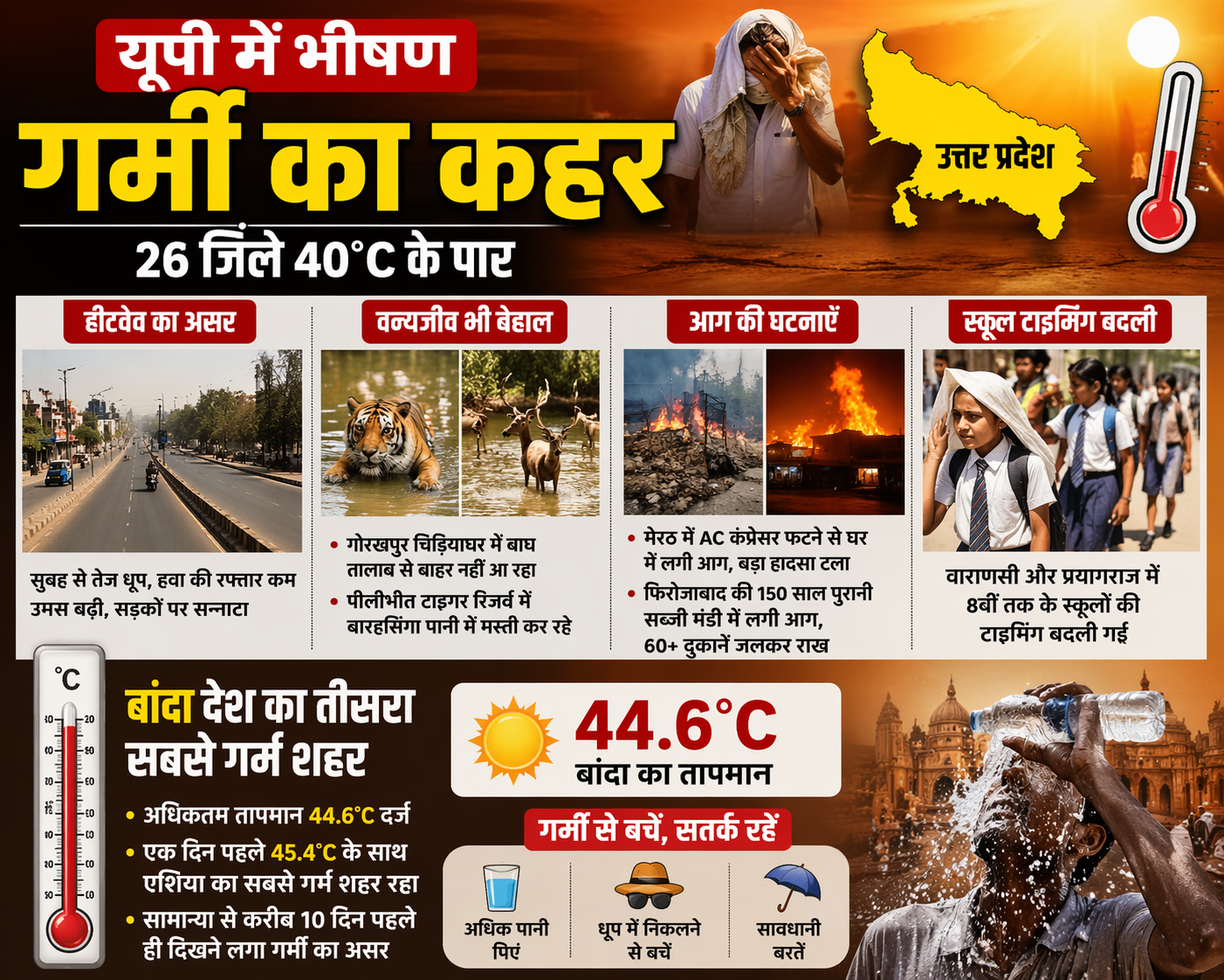 - बांदा का तापमान 44.6°C दर्ज