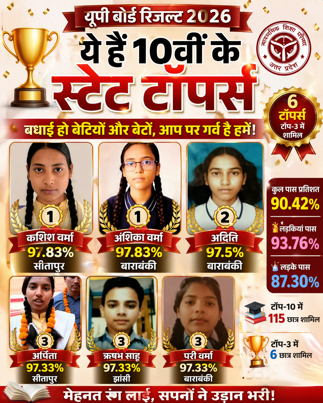 - 🥉 अर्पिता (सीतापुर) – 97.33%