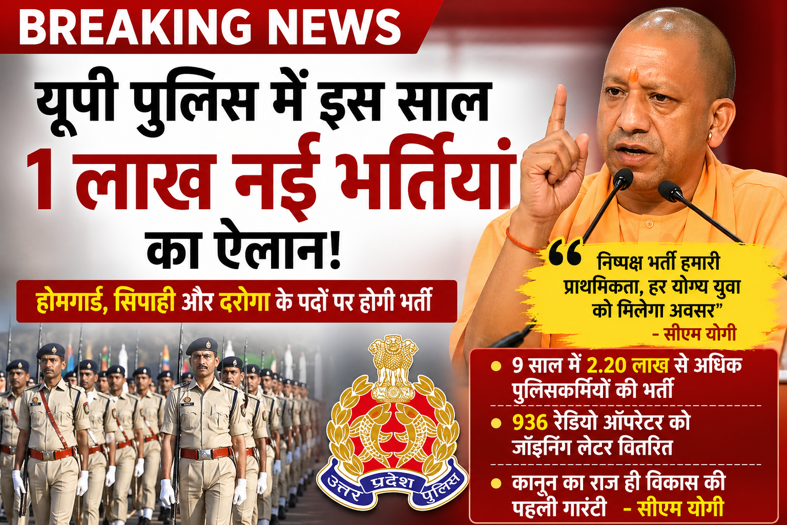 यूपी पुलिस में बड़े पैमाने पर भर्ती का यह ऐलान न सिर्फ रोजगार के अवसर बढ़ाएगा, बल्कि कानून व्यवस्था को और मजबूत करने की दिशा में भी एक बड़ा कदम माना जा रहा है।