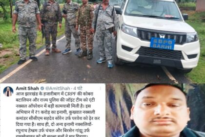 हजारीबाग के जंगल में मुठभेड़: एक करोड़ के इनामी सहदेव सोरेन समेत तीन नक्सली ढेर पूर्वांचल राज्य ब्यूरो रांची/हजारीबाग। खबर ( राजेश कुमार वर्मा) जिले के गिरहोर थाना क्षेत्र अंतर्गत पनतीतरी जंगल...