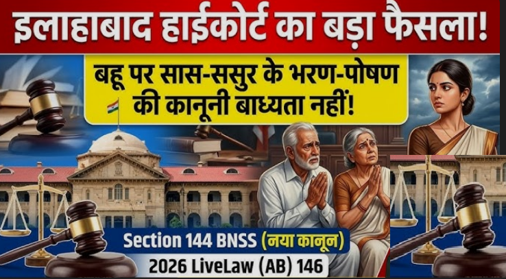 इलाहाबाद हाईकोर्ट ने एक महत्वपूर्ण फैसले में कहा है कि सास-ससुर को अपनी बहू से भरण-पोषण पाने का कानूनी अधिकार नहीं है। अदालत ने स्पष्ट किया कि संबंधित कानून में सास या ससुर को इस श्रेणी में शामिल नहीं किया गया है। क्या कहा कोर्ट न...
